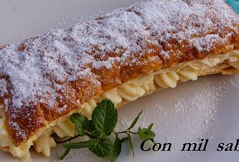 Preparación:Hacemos la crema pastera el día antes, con el fin de que esté buen cuajada y fría.Cortamos los Miguelitos del tamaño que queramos, los míos XXL (por eso son Miguelotes).Los pincelamos con huevo batido y los horneamos hasta que estén bien dorados. Ponemos la crema en una manga pastelera, cortamos el hojaldre horneado por la mitad con un cuchillo de sierra. Rellenamos el interior con la crema y espolvoreamos la superficie con azúcar glass.Buen provecho amigos y feliz fin de semana!!!.