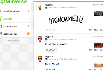 Leo a los amigos de Blocodonia en tuiter que la red social para niños y maricas "Miiverse" ya está disponible en navegador web. De momento solo está disponible para usuarios de WiiU pero me imagino que tarde o temprano se abrirá también para los usuarios de 3DS. Ni que decir tiene que los usuarios del sistema estamos de enhorabuena ya que podremos acceder a el siempre que queramos sin tener que encender la consola a propósito, y a además de paso veremos nuestras capturas de pantalla en el pc y podremos guardarlas.
