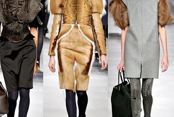 Pieles de pelo combinadas con acierto con otros materiales como lanas, cuero, satenes y en una gama de colores que va desde los grafitos hasta los dorados, pasando por verdes y berengenas. Cinturas marcadas con anchos cinturones, hombreras levantadas que recuerdan a guerreros orientales, y mujeres con sus capelinas de piel, abrigos y corazas en print tribal americano.