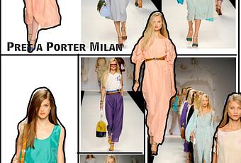 Centrándome un poco en Milán, me atrajo especialmente la colección de Fendi ya que reune todo lo que me gusta, mucho colorido a base de contrastes entre tonos fuertes, violetas con amarillos, azul klein, aguamarina, melocotones... Cortes con cinturas muy marcadas, talle alto, vestidos camiseros, blusones, faldas largas... .Me parece una colección alegre, femenina e informal que se adapta bien al día a día, ¿qué os parece?