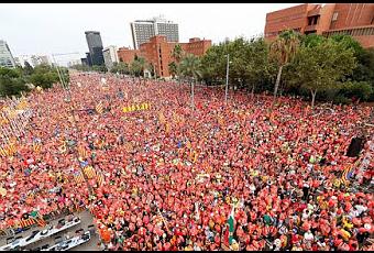Miles de catalanes claman por los presos y por la república catalana.