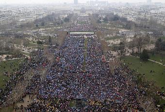 Los manifestantes han salidodesde cuatro puntos diferentes de la capital francesa y se han dirigido hacia el Campo de Marte donde los organizadores de la protesta han leído una carta dirigida al presidente del país, François Hollande.