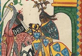 Codex Manesse, f. 26r. Hacia 1305-1313. Página de Graf Friedrich von Leiningen.