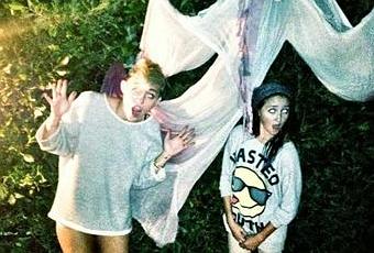 La eterna Hannah Montana colgo una instantánea en una nueva red social llamada 'Pheed' en la que aparece sin pantalón, junto a su hermana Noah, y una fantasmagórcia aparición, vistiendo únicamente una franela bastante ancha.