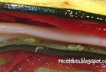 Elaboración: Ponemos a precalentar el horno a 200º . en una fuente de horno colocamos el pimiento con un chorrito de aceite de oliva. Una vez caliente metemos a asar durante tres cuartos de hora. Es mejor hacer más cantidad y les tenemos preparados. Adeñas duran mucho. Cortamos en lonchas el calabacín y salamos para que suelte el agua. Preparamos una sartén o plancha y cuando esté caliente vamos dorando el calabacín. Sacamos los pimientos y les quitamos la piel. Vamos colocamndo una loncha de calabacín, pavo, calabacín, pimiento, calabacín. o al gusto. Una buena manera de comer vegetales.