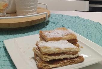 una masa de hojaldre rectangulardulce de lecheazúcar glass o en polvo