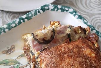 La primera capa será de queso, la siguiente dos capas de calabacín, le sigue un capa de la mezcla de huevo, una capa de jamón, otras dos de calabacín, otra de huevo y otra de queso. Seguir así hasta llegar arriba del molde.