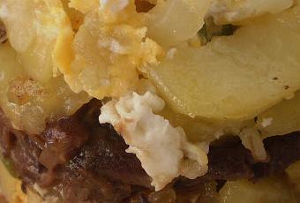 Para emplatar:Colocar el molde en el plato y poner una primera capa de carne desmenuzándola con cuchillo y tenedor (se hará sin ningún esfuerzo....ya que estará muy tierna y jugosa).A continuación una capa de patatas a la que seguirá otra de carne, para por último, colocar otra capa de patata.Salsear al gusto.......