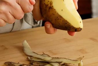 - Pelar y cortar las papas en láminas finas, pude ser con cuchilo o mandolina.