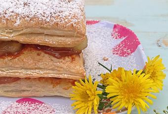 Podemos cocinar las plancahs de hojaldre con anterioridad, conservarlas envueltas en plástico y así tenerlas listas para armar el postre en un abrir y cerrar de ojos.Para que el hojaldre no se rompa cuando lo cortamos, debemos hacerlo con un cuchillo con dientes.