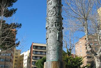 La escultura hace referencia a toda la historia de la ciudad desde los acontecimientos históricos más antiguos, en la base, hasta los más recientes, en la cumbre, con referencias a las épocas celtibérica, romana y visigoda, y con alusiones a las culturas cristiana, musulmana y judía".