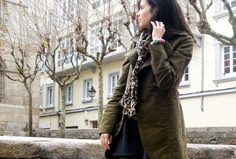 El abrigo que llevo de inspiración "militar" y el pañuelo en estampado print animal, fueron mis únicas adquisiciones rebajiles.