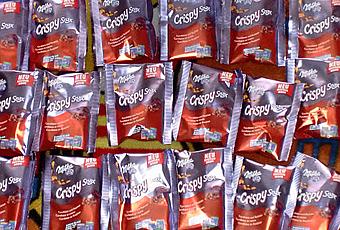 Recibimos los Crispy Snax ,Se trata de un snack de cereal (copos de maíz) y pasas recubierto de cremoso chocolate con leche Milka.