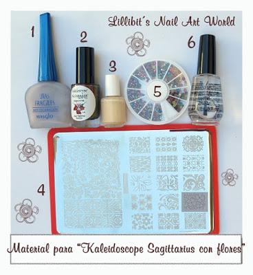 1. Prebase de Masglo Uñas Frágiles.2. Esmalte Milky Way MW 06 de Kaleidoscope.3. Para estampar, Mundo de Uñas Pale Rose 50.4. Placa Cici&Sisi 23.5. Studs.6. Top coat Poshé.¿Qué os ha parecido el esmalte? ¿No es super bonito?¿Os gusta la decoración floral?