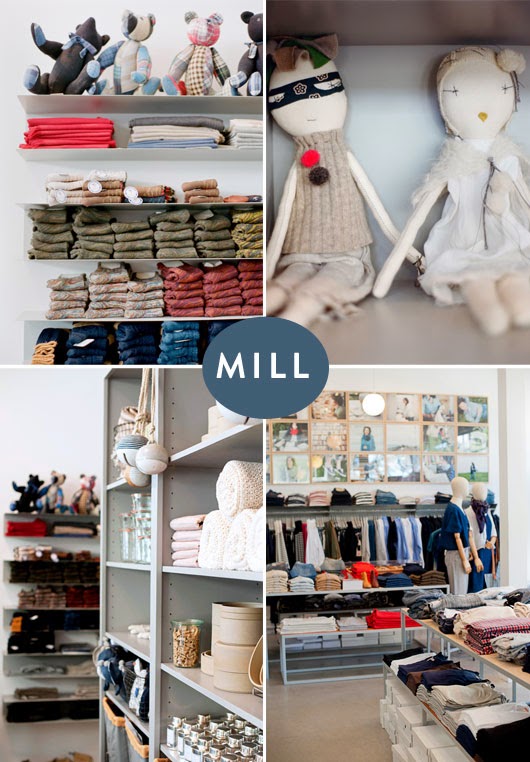 Mill es una tienda nacida en San Francisco con la filosofía de la conciencia social, su producto mayoritario es la ropa aunque tienen un sección muy interesante de menaje para la casa. Los que caracteriza este interior es el empleo del color gris en todas sus variantes con materiales diversos, suelo continuo en cemento, paredes en gris, madera pintada en gris, etc...