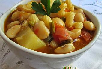 Me acordé estos días atrás de la sopa minestrone y es por eso que he decidido explicaros cómo la preparo yo, que más que una sopa lavada es un plato contundente, en mi versión. ¿Grasas? pues no le pongo ninguna, salvo aceite de oliva, aunque mi marido siempre que la hago me dice lo mismo: "A esto le habría venido bien una puntilla de chorizo o de jamón". Y yo le digo: Otro día. Esa puede ser vuestra elección, si os apetece.