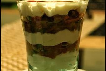 Montamos en vasitos individuales, una capa de cremoso de queso, una capita de verduras, otra capa de cremoso, otra de verduras y finalizaremos con una capa de cremoso.