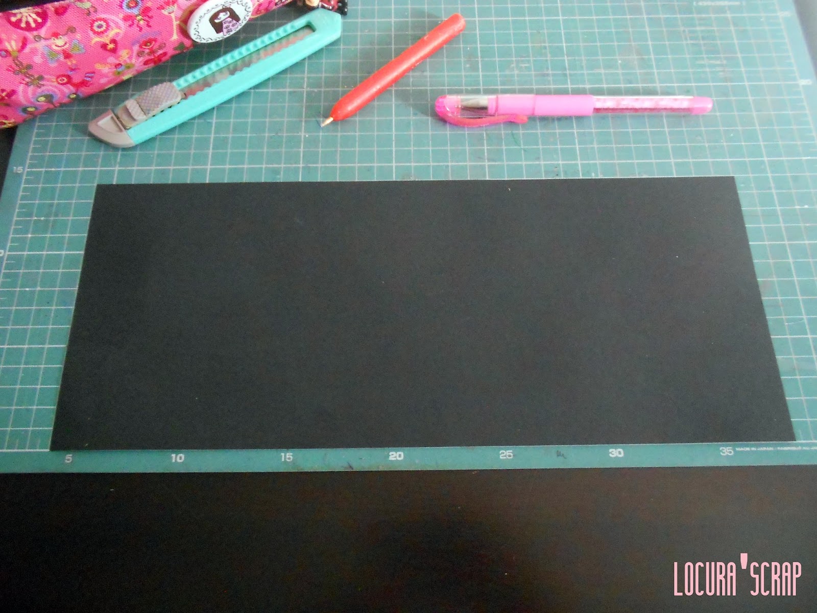 Lo primero que tenemos que tener es una cartulina tamaño 34cm x 14cm