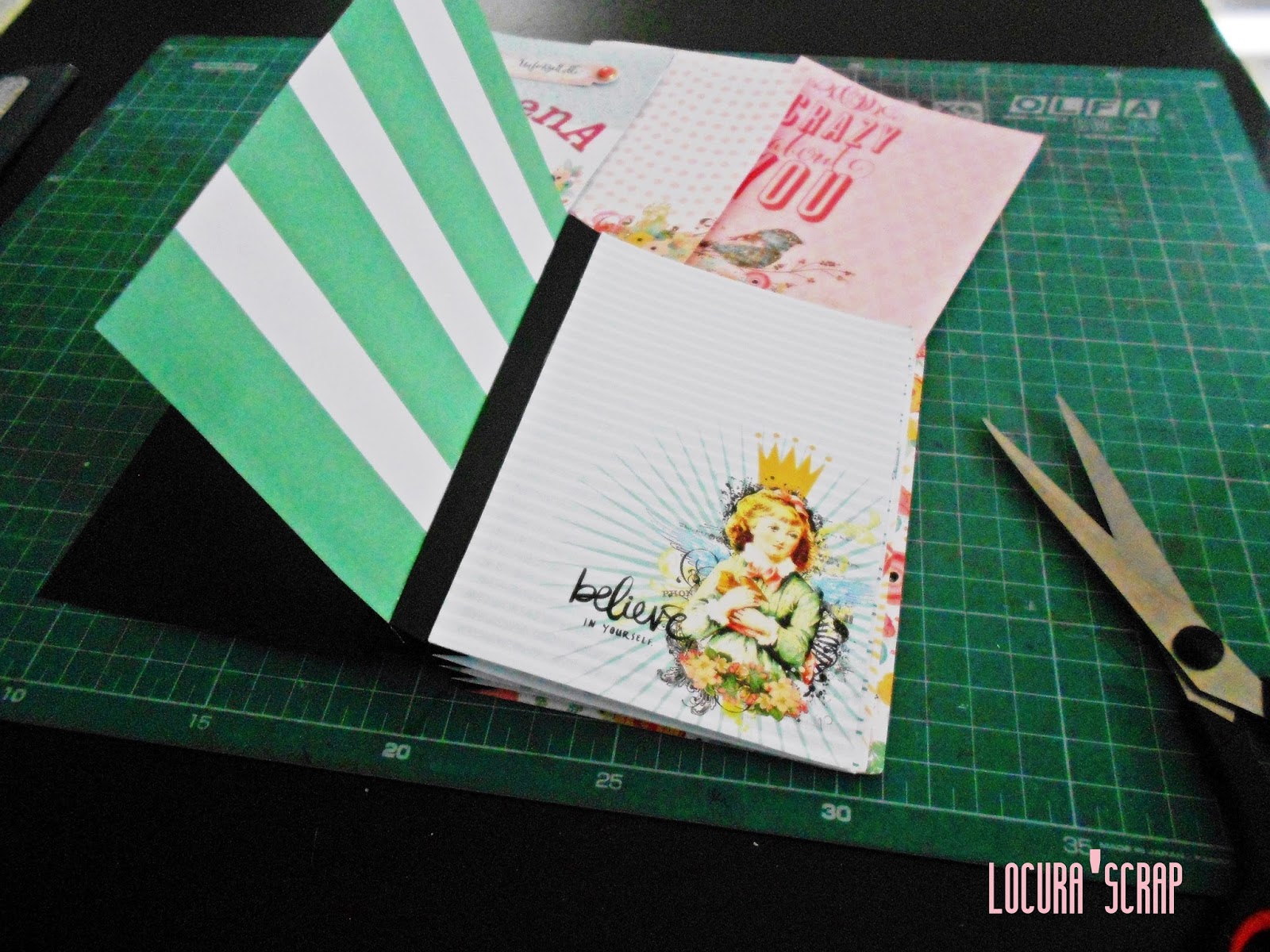 Y pasamos a pegar nuestras paginas , yo las hice medio centímetro mas peques que las pastas , pero eso va en gustos