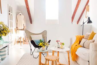 No hay ni un centímetro cuadrado desaprovechado. Es un espacio rectangular abierto en el que se van sucediendo las distintas zonas: dormitorio, salón-comedor y cocina.Gracias a una ventana en el techo inclinado del dormitorio y a la ventana que hay en la cocina, la vivienda disfruta de mucha luz natural. Todo ello combinado con una decoración en tonos claros, blancos, beiges y contrastes en amarillo, se crea un ambiente de amplitud y delicadeza en toda la vivienda.Seguro que después de ver este espacio, te apetece disfrutar de tus vacaciones en este mini ático...En el próximo post...'Casita de verano sueca'¡No te lo pierdas!