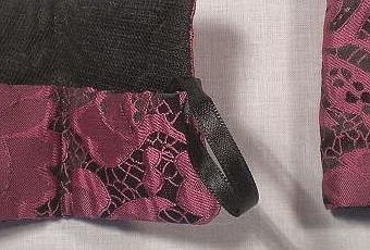 Tendré que repetirlos porque me gusta mucho la tela de brocado (no sé si se llama así, pero si no lo es, la acabo de bautizar) en tonos fucsia y negro.He usado tul negro porque iba más a tono.... El forro, también está hecho en brocado negro pero no se aprecia.