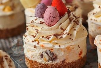 Estas tartitas de queso no requieren horno, se preparan en moldes pequeños y pueden personalizarse con tus chocolates de Pascua favoritos. Perfectas para una mesa dulce, un picnic o como detalle especial en el almuerzo familiar.