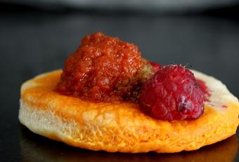 Mini Coca de Sobrasada, Pasta de Aceituna Arbequina y Frambuesa: