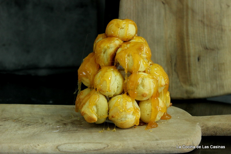 Al leer la receta de Paco sus medidas, algunos comentarios de por ahí y algunos de los desastrinos en MasterChef, pensé !!ufff!! esto no hay quien lo haga, así que me decidí a #unsegurola o un #recetasindependientesalpoder como dice mi amiga ChezSilvia y como no podía ser de otra manera, lo conseguí con la receta de mi amiga blogger Cristina de Kanela y Limón. Su receta no presenta ni medio problema, es perfecta, incluso para una impaciente y poco armoniosa como yo. Te dejo mi CroquemBouche, paso a paso. En mi caso, ese día éramos sólo cuatro #raroraroraro, así que hice un mini con 20 profiteroles, 8 en la base, 7 en el segundo piso, 4 en el tercero y uno en el remate, por lo que utilicé la mitad más o menos de los ingredientes de Cristina.