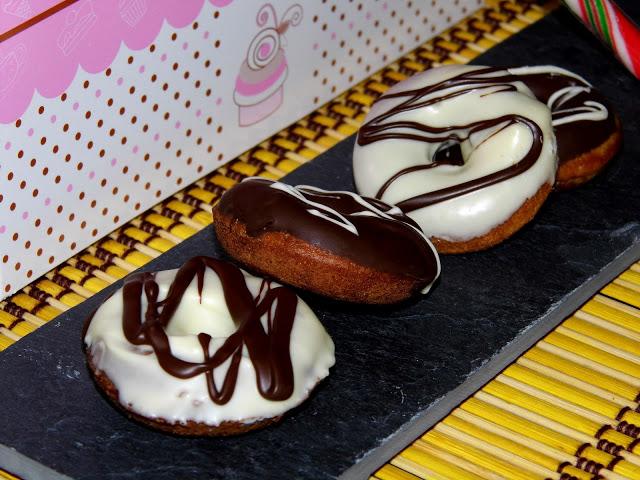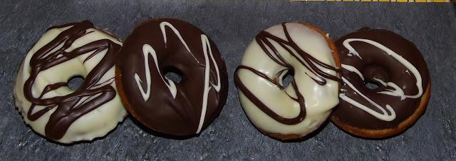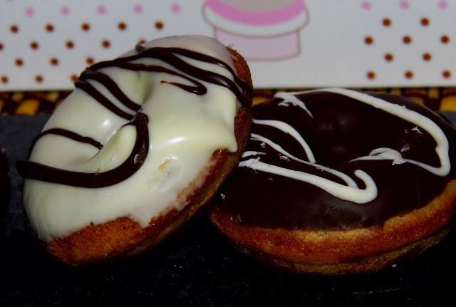 Mis consejos para esta receta son: Que uséis una bandeja especial para formar los donuts, yo tengo una donutera que compré hace un tiempo del Aldi, es como una sandwichera pero con las formas de los donuts, no calienta igual que el horno y seguro que me habrían quedado mejor. En la receta pone que se puede usar manga y formar en una bandeja tradicional para horno pero a mi... la masa no me quedó muy espesa como para formar los donuts, si probáis esto último ya me contareis, yo sin duda me voy a comprar la bandeja especial para donuts pues creo que haré más de una vez. El Suero que pone en la receta es Buttermilk, lo podéis hacer mezclando la cantidad que pone de suero por leche con un chorrito de limón y dejando reposar 10-15 minutos, o sea... si te pide 40gr de suero pones 40gramos de leche con un chorrito de limón.