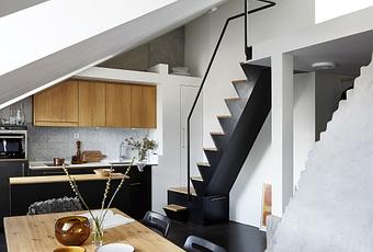 Una vivienda diferente para los que prefieren vivir solos en el centro de la gran ciudad, un mini dúplex con planta diáfana de 36 m² y altillo de 21 m² para el dormitorio.