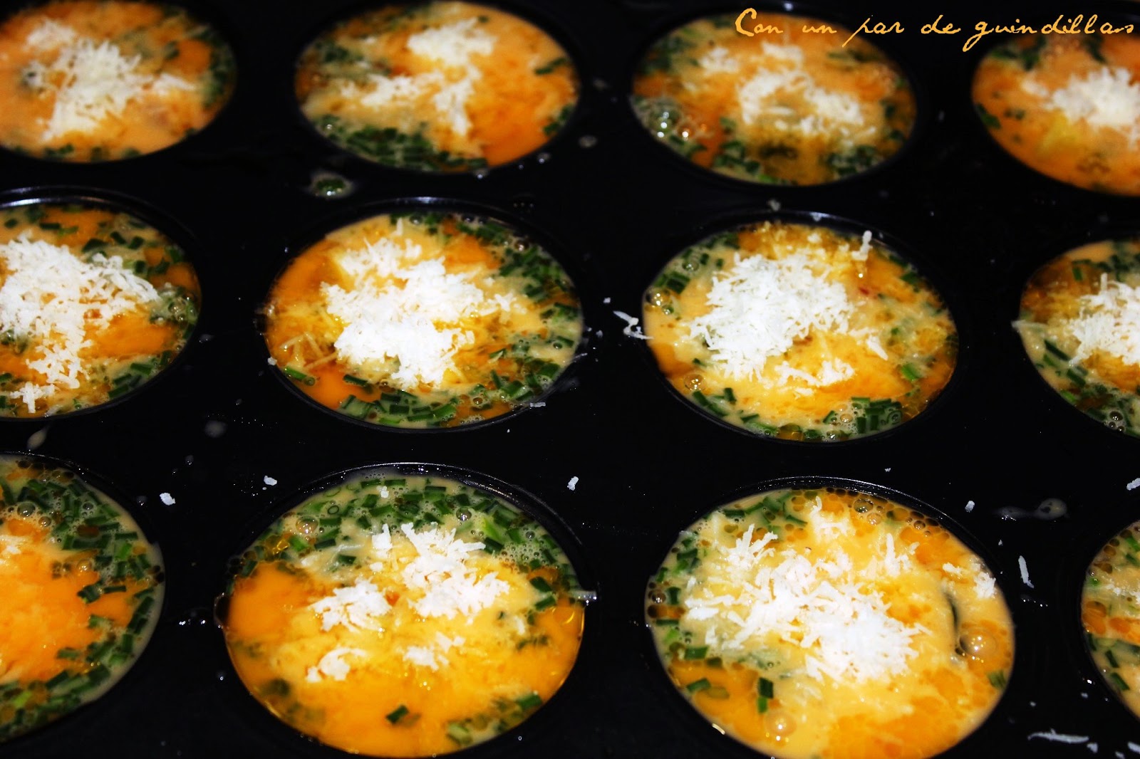 Salpimentamos y la repartimos en una bandeja para hornear magdalenas.