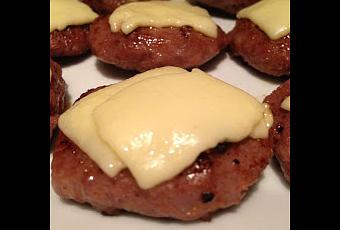 Ponemos en una sartén un chorro de aceite y las mini hamburguesas , cuando les demos la vuelta ponemos el queso para que se funda lentamente .