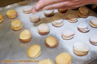 Para la galleta se coloca en un recipiente la manteca, el azúcar glas, el azúcar vainillado, las yemas y los huevos. Se mezcla bien la harina con la levadura y se incorpora a los ingredientes anteriores hasta obtener una masa. Se mezcla bien pero sin trabajarla demasiado. Se tapa con papel film para que no cree corteza y se deja reposar en cámara.