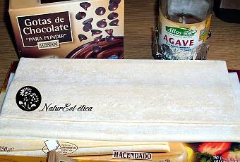 A continuación, una a una, vamos poniendo en cada lámina cortada, una tira de pepitas de chocolate.