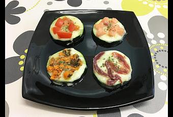 Hoy os traemos una versión más ligera y saludable de las pizzas, con una base de calabacín y en formato mini, para poder comerlas de diferentes sabores sin tener remordimientos.