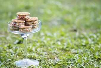 Mezclaremos la mantequilla junto con el azúcar glass y el queso de untar hasta que obtengamos una masa uniforme, lisa y sin grumos. Con ayuda de una cuchara cogeremos porciones y las pondremos sobre 8 mini gofres de caramelo. Cubriremos cada uno con otro mini gofre. Finalmente espolvorearemos los sprinkles de colores en la crema por los bordes del mini sandwich.