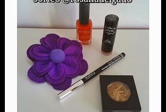 1. Broche/coletero morado de fieltro (yo tengo otro igual en rojo y lo uso como broche con abrigo negro)2. Esmalte rojo "efecto azúcar" de Kiko 3. Perfilador de ojos morado claro de Kiko4. Barra de labios de Nyx, tono Goddess5. Sombra marrón dorado con vetas de Fashionista.