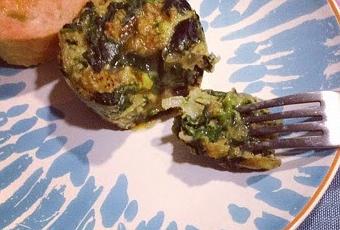 Mini tortillas al horno de espinacas y berenjena asada con cebolla