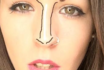Lo primero que tenemos que hacer es usar una base de maquillaje un tono más oscuro del color de tu piel empezando a aplicarlo en el empiece de tu ceja trazando una línea fina en los laterales de tu nariz y bajando esta línea hasta el final de tu nariz.