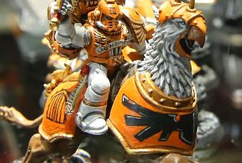 Cuentan que ademas de los premios de juego y demás,hubo premios para los ejércitos con las figuras mejor pintadas y transformadas.Los ganadores de esas categorías,ademas de los premios que se llevaran tendrán sus obras expuestas en las vitrinas del Warhammer World,en el Citadel Miniatures Hall, hasta el 25 de agosto.La verdad es que en las fotos se ven cosas bastante curiosas y chulas,como ese marine espacial montado en semi-grifo capitaneando un escuadrón de motos.La verdad es que el pintado esta muy.Otra pieza que me ha gustado mucho ha sido un Knight,pintado con los colores de los Cuervos Sangrientos.El marine montado en semi-grifo pertenece a un chaval llamado Samuel del Dr Challoner’s Grammar School,mientras que el Knight es de otro,llamado Tom del Winston Churchill School.Samuel gano en mejor transformación y mejor ejército.Los demas,que junto con Tom y sus marines con Knight habia un ejército Eldar propiedad de Daniel del Winston Churchill School también y uno de Hombres Lagarto de un tal Charlie del Friesland School .