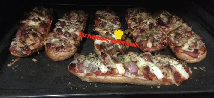 Cortamos las minis barras por la mitad, las untamos de tomate, ponemos tiras de