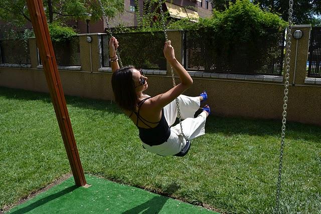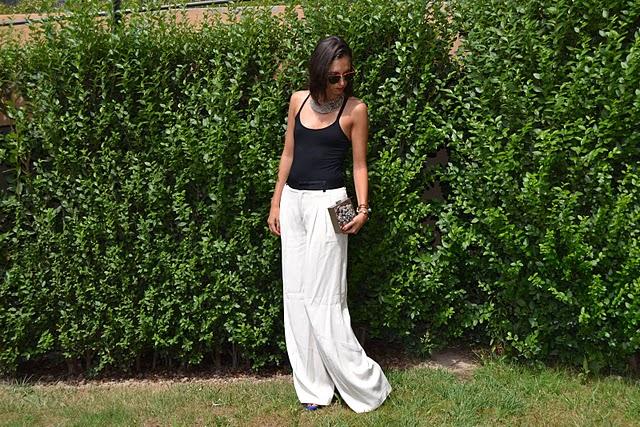 Adoro las combinaciones sencillas en blanco y negro.Te permiten estar perfecta a cualquier hora.Sin embargo, es importante romper con con el binomio cromática con accesorios en tonos eléctricos.