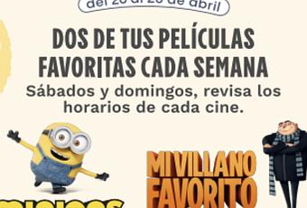 La exhibición comenzará el día sábado 20 y domingo 21 de abril con “Mi Villano Favorito 2” y “Minions”; y luego continuará el sábado 27 y domingo 28 de abril con “Mi Villano Favorito 3” y “Monions: Nace un Villano”.