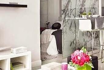 Hola a todos! Hoy os traigo un minipiso que he sacado de la página Designrulz, de tan sólo 40 m2 pero completo en todos los aspectos. El apartamento cuenta con dos colores base, el blanco y el gris, y va rompiendo con otros colores que le aportan alegría: el verde en salón y cocina; el rosa fuerte en el dormitorio; y el morado en el baño. La separación del dormitorio es con una puerta corredera de cristal decorada con un vinilo. Me ha llamado la atención cómo el diseño de la lavadora queda perfectamente integrado en el baño.