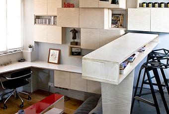 Hola a todos! El minipiso de hoy es uno de los más pequeños que he visto nunca, de tan sólo 16 m2. Diseñado por los arquitectos Marc Baillargeon y Julie Nabucet que han logrado introducir todos los elementos necesarios para vivir en espacio tan reducido, como si de un rompecabezas se tratase. La cocina se encuentra elevada respecto el salón para alojar bajo el suelo de la misma la cama, una ingeniosa solución. Espero que os guste, que paseis un buen miércoles!