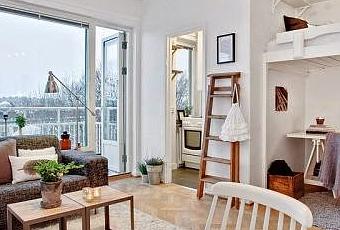 Buenos días a todos! Hoy os enseño un minipiso de 29 m2 que se encuentra situado en Suecia, con un estilo propio del lugar. En este minipiso aprovechan la altura del mismo para colocar una cama tipo litera, con estudio en la parte inferior. Tengo que decir que no es de las soluciones que más me gusten, en especial por la escalera de la litera (supongo que es que me da cierto vértigo), pero hay que reconocer que es una buena manera de aprovechar el espacio y que el conjunto ha quedado genial. En otro post os pondré soluciones de este tipo pero a mi forma de ver más cómodas. Lo que más me ha gustado del piso es la miniterraza, aunque en la foto da un poco de frio...;). Espero que os guste! Que tengáis un buen comienzo de semana!