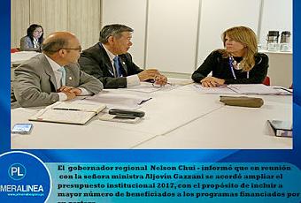 La titular del Midis será la primera en llegar a la Ciudad Capital de la Hospitalidad este 25 de noviembre, a fin de supervisar los programas sociales y participar de la décimo segunda Feria Regional Agropecuaria, Agroindustrial, Artesanal y Gastronómica – Expo Región Lima 2016, organizada por el Gobierno Regional de Lima.El gobernador regional - informó que en reunión con la señora ministra Aljovín Gazzani se acordó ampliar el presupuesto institucional 2017, con el propósito de incluir a mayor número de beneficiados a los programas financiados por su cartera.Igualmente, informó de la llegada de la más alta autoridad del portafolio de Cultura este 27 de noviembre, para la firma de un acuerdo e iniciar la restauración y puesta en valor del histórico Balcón de Huaura, en el marco de celebrarse el Primer Grito de Libertad del general José de San Martín, efeméride que coincide con la Séptima Cumbre de la Mancomunidad Regional Pacífico Centro Amazónica (PACA).
