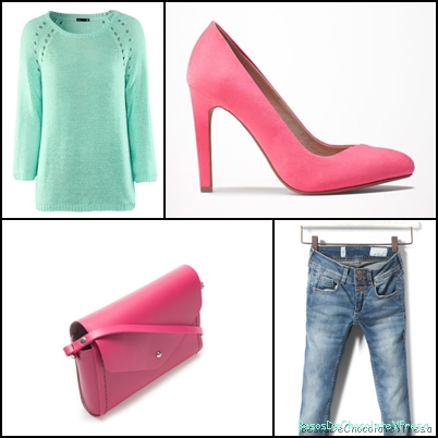 I show a set which combine the mint green sweater from H & M jeans and pink complentos in fluorine.