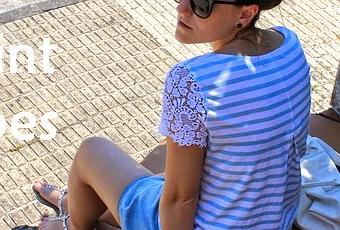 Hoy os enseño esta de Sfera, con mangas de guipur y rayas en color verde mint. La combiné con shorts bombacho efecto denim, sandalias de pinchos y bolso blanco a juego con el reloj de esfera cuadrada y collar de corazón.