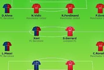 Para los fanáticos les traemos una formación de equipo donde figuran jugadores de otros clubes, es una alineación especial ya que figuran excelentes jugadores como CR7 también Lionel Messi además de españoles y brasileños como se ve en muchas imagenes con informacion de jugadores de futbol.
